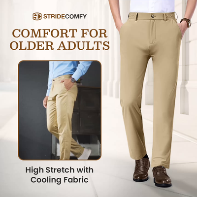 Unlike any other traditional khakis, StrideComfy is 50% Thinner, offers a light touch, wicks moisture, and releases heat. These pants ensure you stay cool with a cloud-like feel all day.